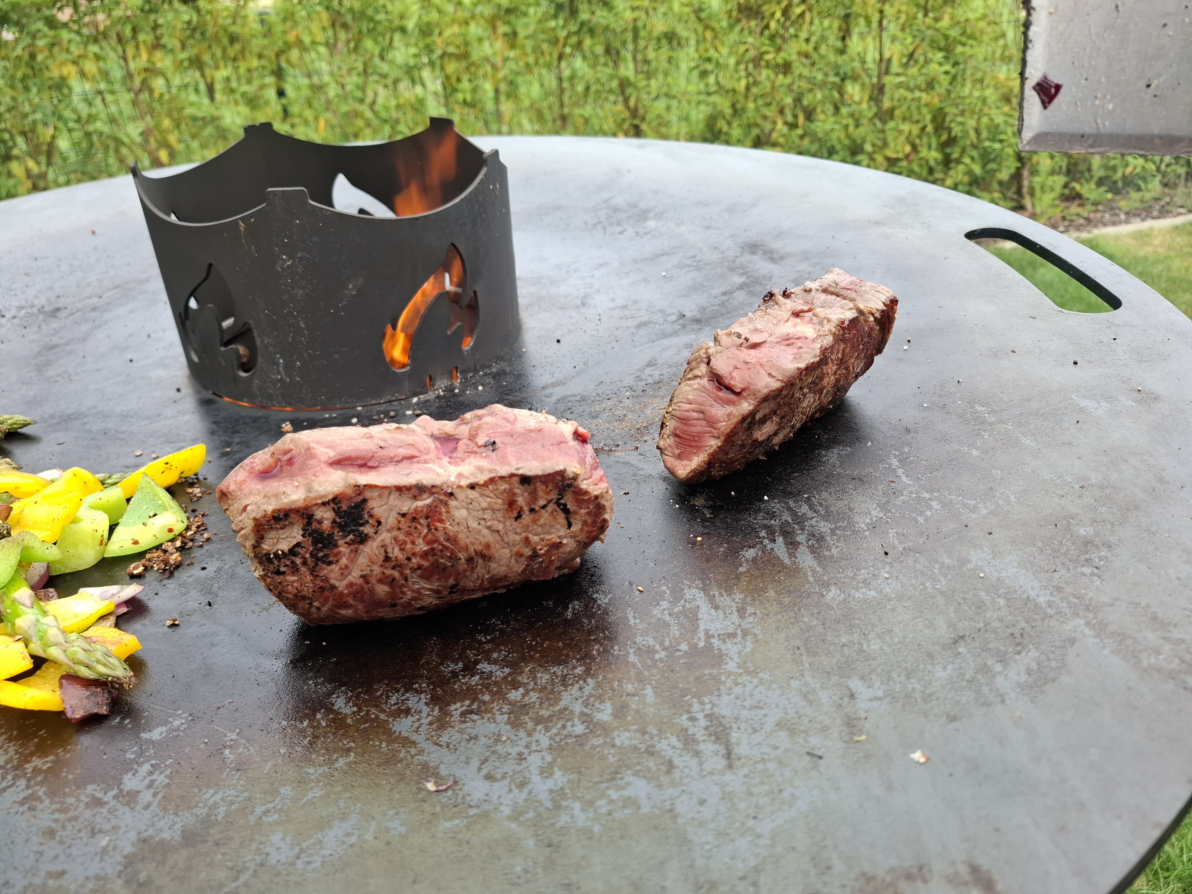 Die Finalisierung ist ganz einfach: In einem großen Topf Wasser salzen und (fast) zum Kochen bringen. Es soll sieden, das ist die Vorstufe zum sprudelnden Kochen. Die Ravioli ins Wasser geben und ca. 5-7 Minuten ziehen lassen. Nebenbei Spinat und Speckfond erhitzen. und alles auf hübschen Tellern anrichten.