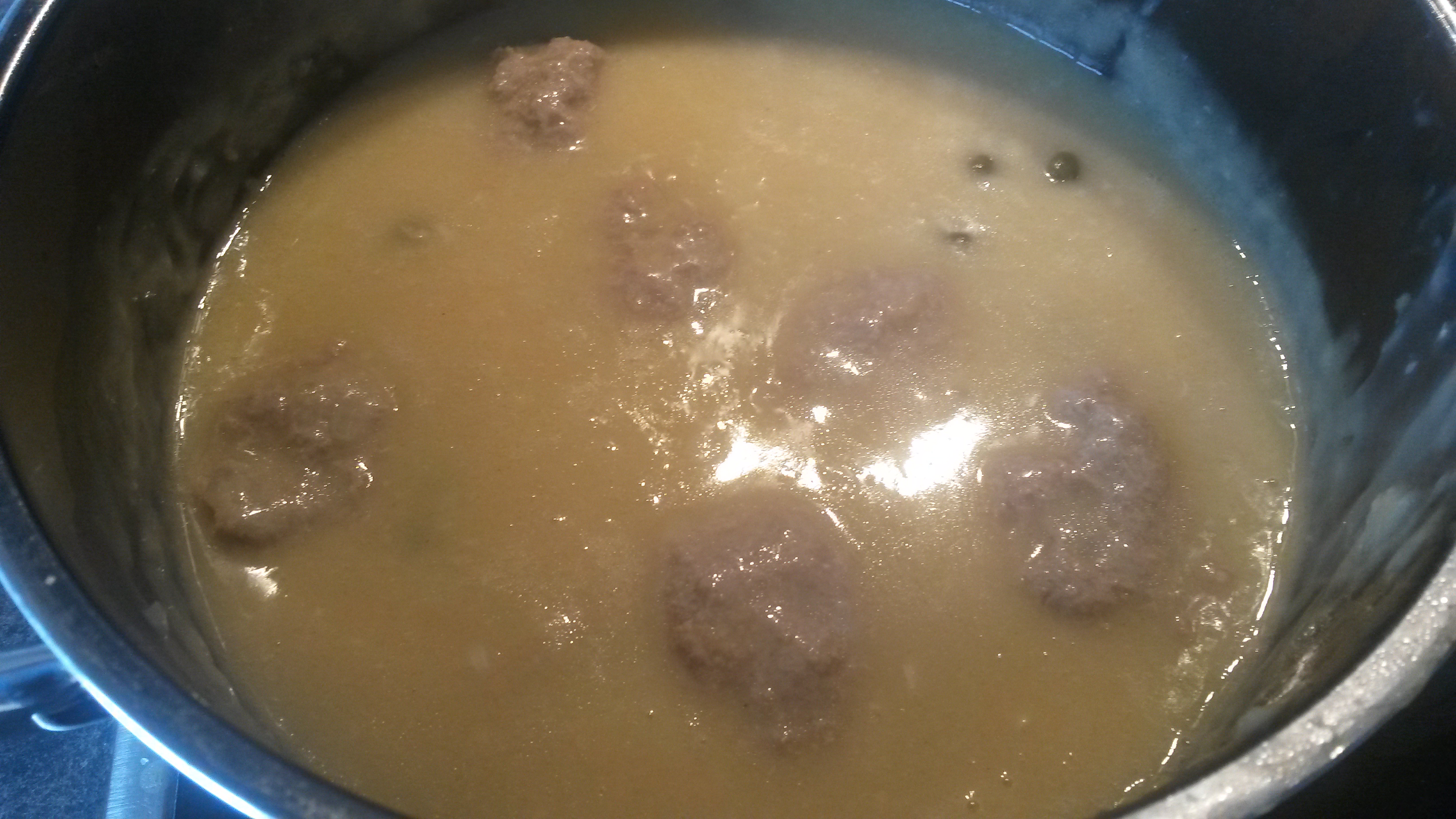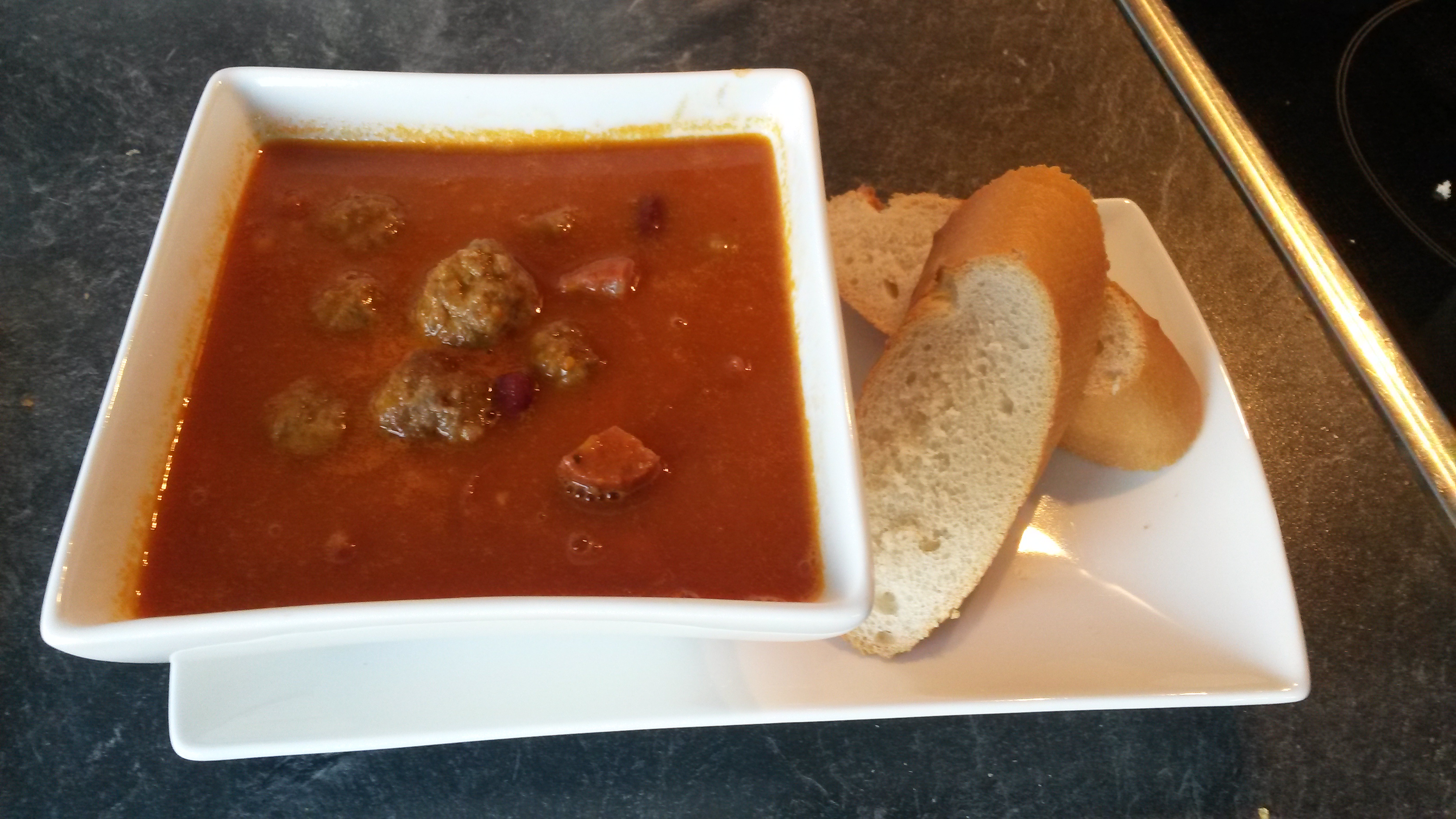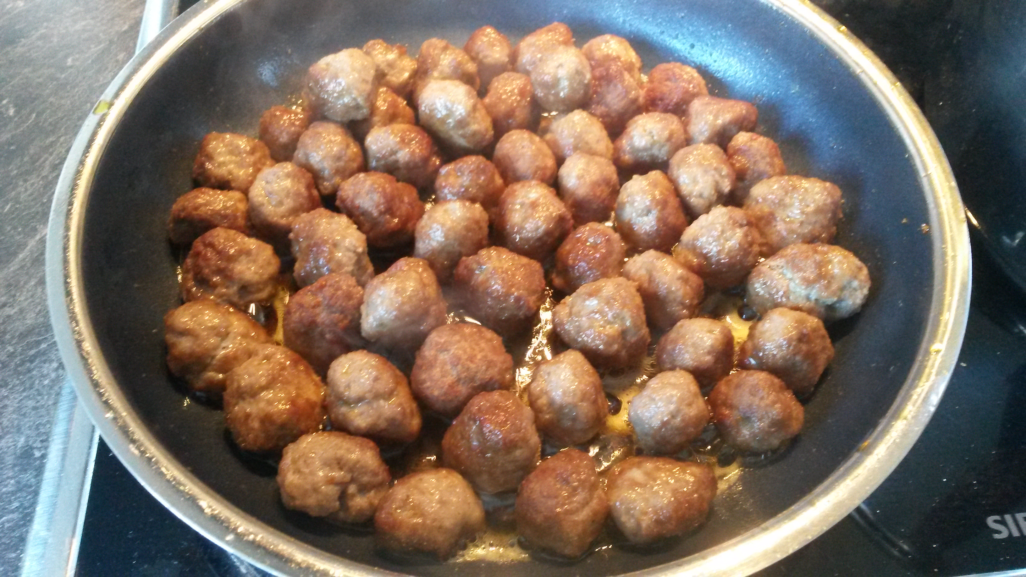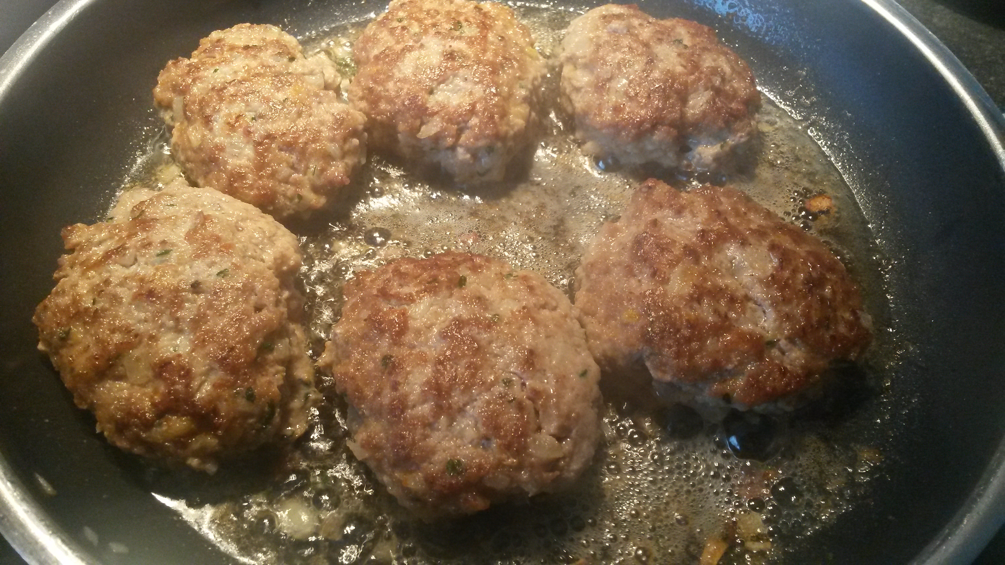 Zuerst die von der Haut befreite und klein gewürfelte Chorizo ca. 10Minuten braten, dann samt ausgetretenem Fett in eine Schüssel umfüllen, dann die Hackbällchen anbraten und ebenfalls in die Schale umbetten.