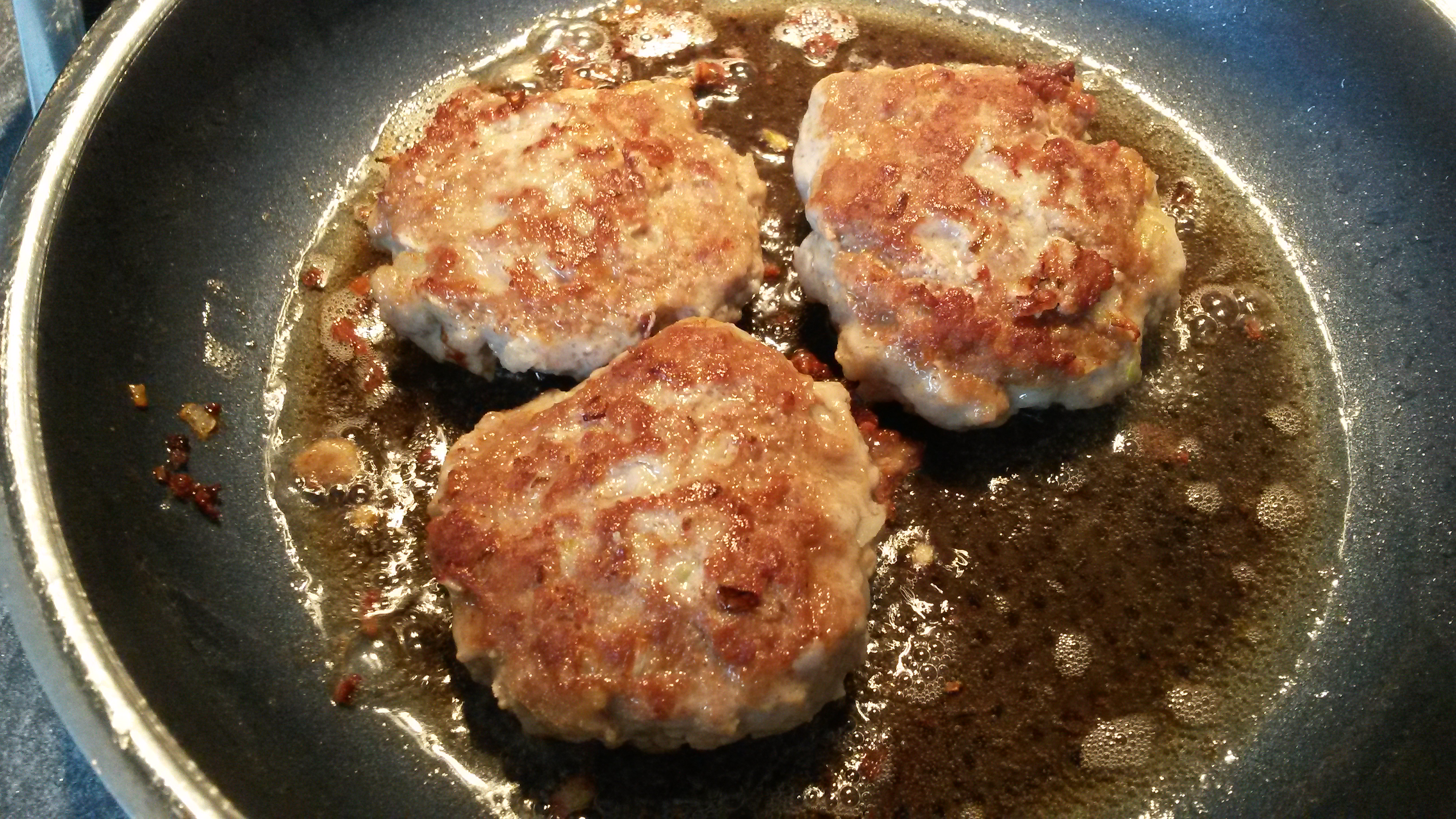 Fett in einer Pfanne erhitzen. Mit einer Suppenkelle 4 Klekse Teig hineingeben und von beiden Seiten braten.