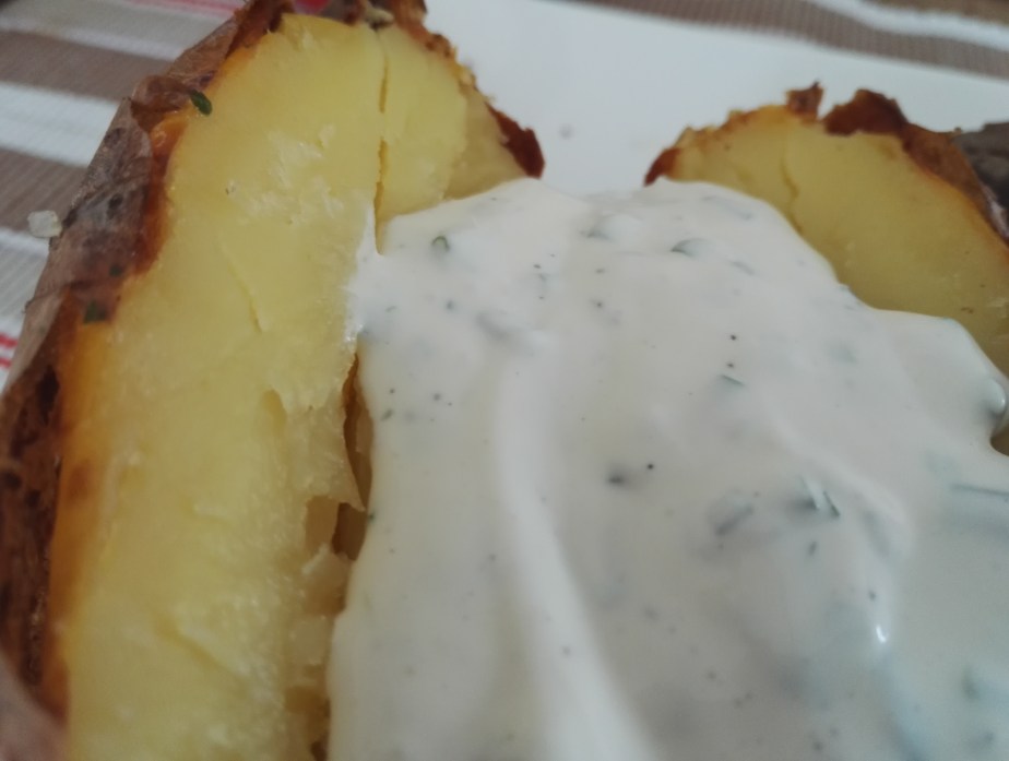 Die Kartoffel sieht von außen so richtig schön gebacken aus und ist innen herrlich cremig und durch das Salzbad leicht würzig…wirklich richtig lecker!