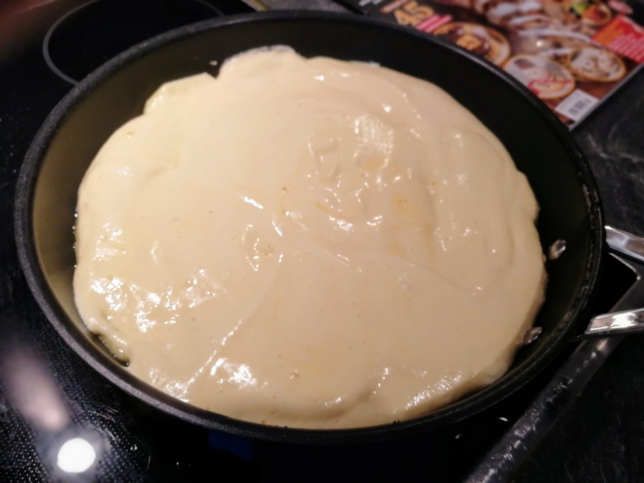 Jetzt zählt’s! Der Teig wird nun behutsam in Form gebracht. Dies geschieht ausschließlich mit den Händen. Die Verwendung eines Nudel- oder Rollholzes ist strengstens untersagt, weil damit sämtliche Luft, die die Pizza zum ‚fluffig werden‘ benötigt, herausgepresst würde. Die Pizza auf ca. 25-30 cm Durchmesser vergrößern. Wie genau dies funktioniert, kann man sich am besten via Youtube aneignen. Die exakte Dicke des Teigs kann ich nicht genau beschreiben, dafür muss man tatsächlich ein Gefühl entwickeln.